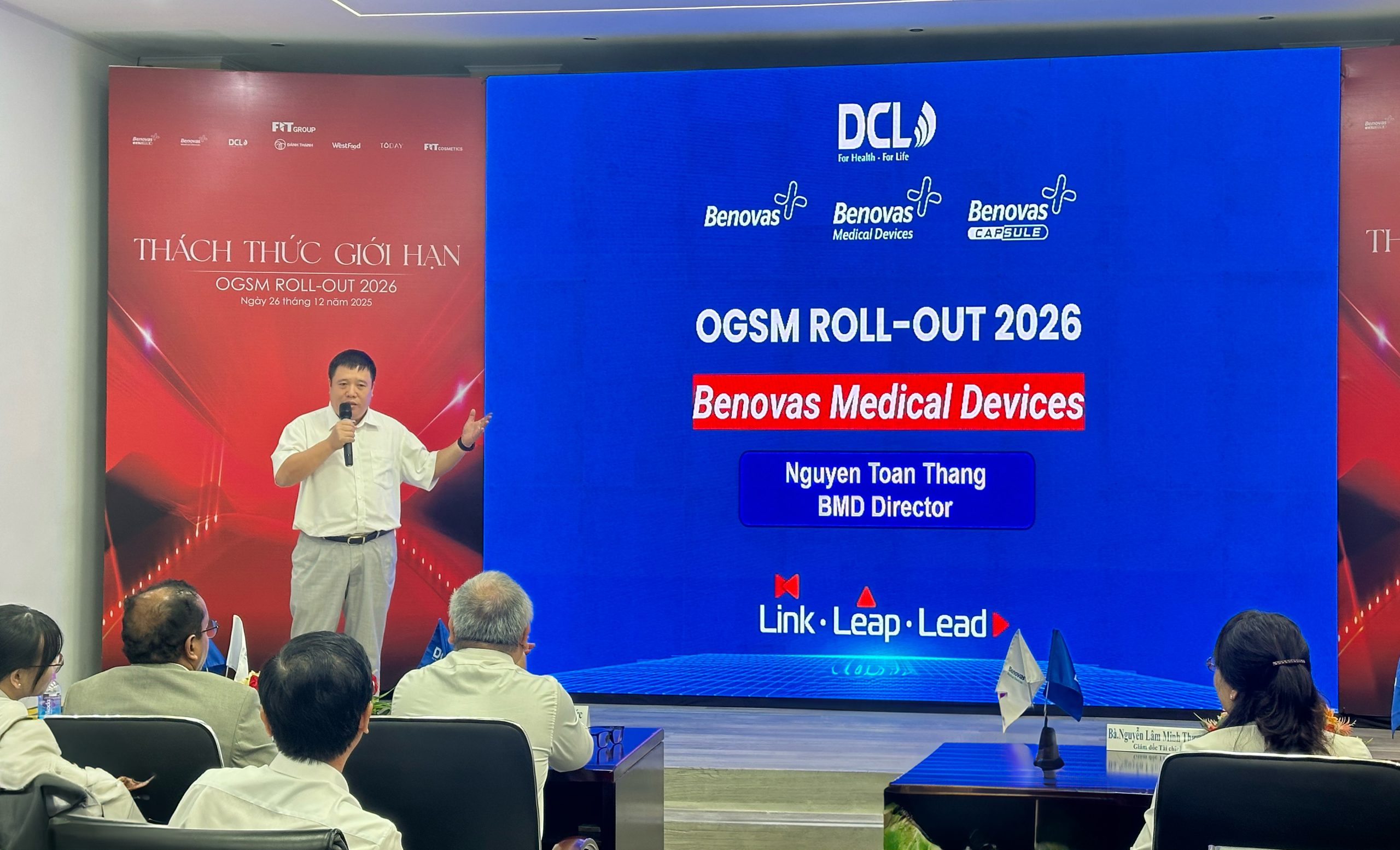 Hội nghị OGSM Roll-out 2026 “Thách thức giới hạn” có sự tham gia của Chủ tịch Nguyễn Văn Sang, Ban Giám đốc Tập đoàn, Ban Giám đốc CTTV cùng CBNV toàn Tập đoàn.
